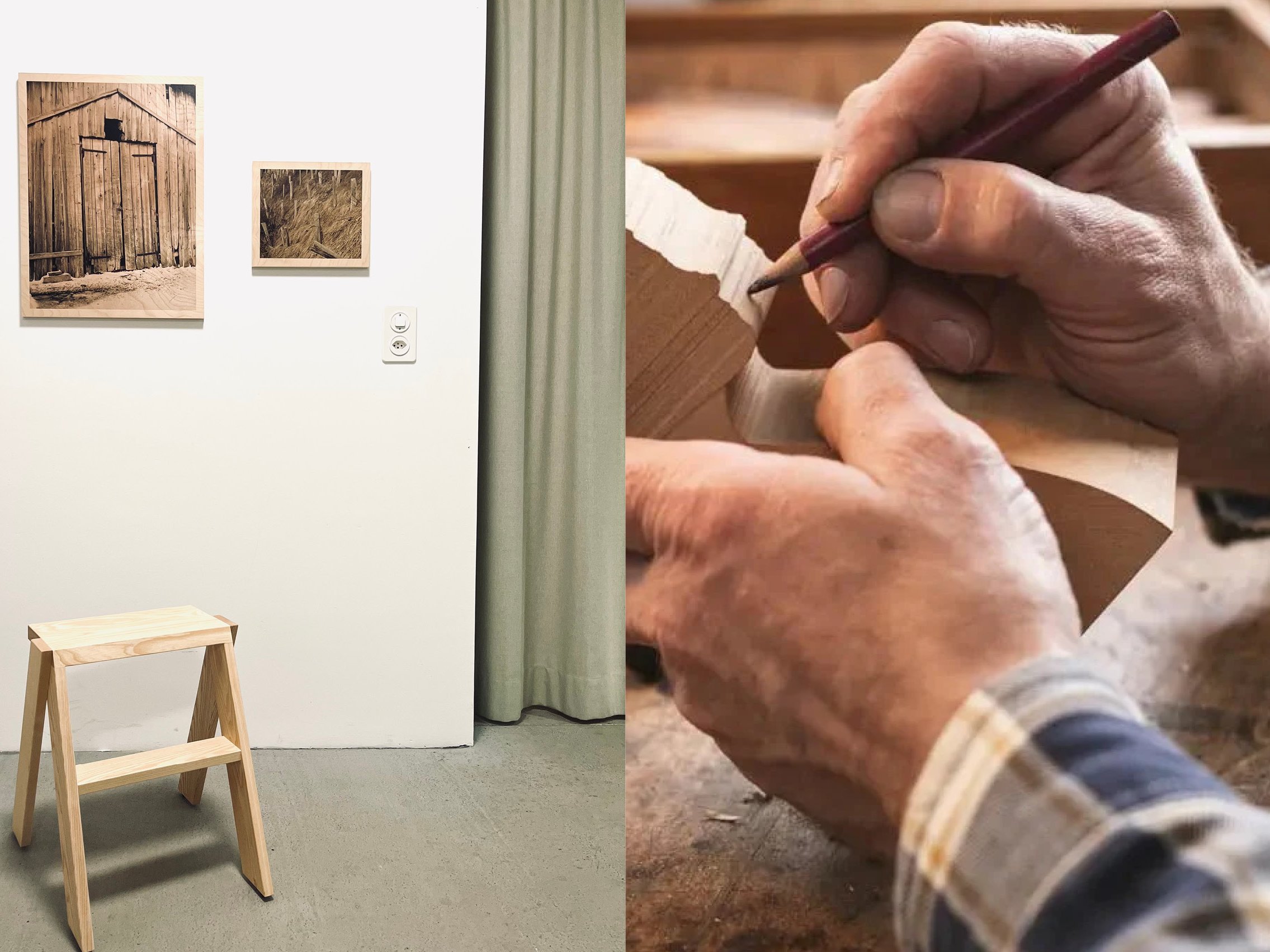 Ella zezzaneera sentaupan fotografias da Straube cun stgabellas da lenn contemporanas e bein elavuradas dils designers industrials Sebastian Marbacher e Fabio Rutishauser, dalla pintga manufactura raïna dalla Val Müstair, dil mistergner da lenn Thomas Florin, dalla scrinaria Spescha da Rueun, digl atelier Lomann da Regensdorf e dalla manufactura da sutgas e meisas Horgenglarus.