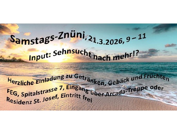 Sonda, ils 21 da mars 2026 dallas 09.00 - 11.00, FEG cuminonza evangelica libra, Spitalstrasse 7, dalla scala digl Arcada ni cun igl ascensur Residenza St. Josef a Glion.