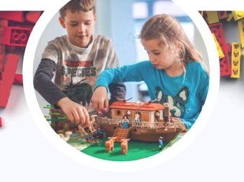 6- bis 12-jährige Kinder bauen eine biblische Geschichte mit Legos nach.