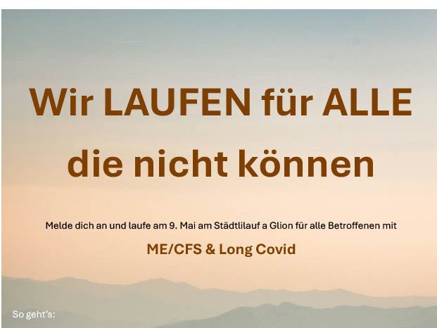 Melde dich an und laufe am 9. Mai am Städtlilauf a Glion für alle Betroffenen mit ME/CFS & Long Covid.